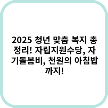 2025년에는 청년들을 위한 맞춤형 복지 정책이 더욱 확대됩니다.